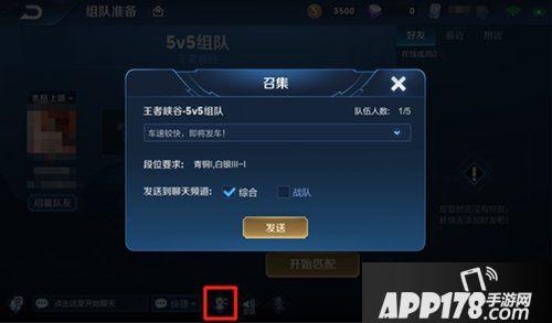 排位赛、所有竞技模式和部分娱乐模式(梦境大乱斗、无限乱斗、火焰山)将支持房主发送组队信息到聊天频道。在组队准备界面点击下方的小人按钮,即可发送召集信息。