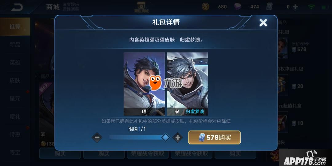 玩家要是想要购买归墟梦演这款皮肤,小编并不推荐单独购买。因为新英雄上线之初都有活动礼包,包含英雄与半生皮肤,只要578点卷,综合起来非常的划算。另外如果玩家有多余的皮肤碎片,只要28个皮肤碎片就可以得到这款皮肤,一份钱都不用花岂不是美滋滋。