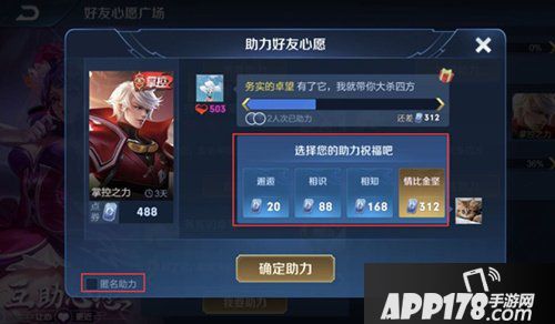 Q:给好友助力心愿可以分档次,不需要一次性付英雄/皮肤全款?