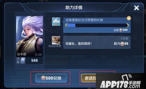 (点击【助力详情】,可以使用500心愿点兑换心愿英雄云中君)
