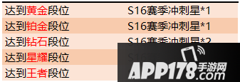 总共可通过段位回馈获得S16赛季冲刺星*28