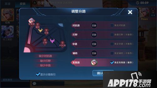选定英雄后,界面将出现不同英雄的默认分路指引界面,帮助召唤师更好的知晓当局分路情况,当然也可以再分路调整里调整分路情况或关闭该分路指引显示