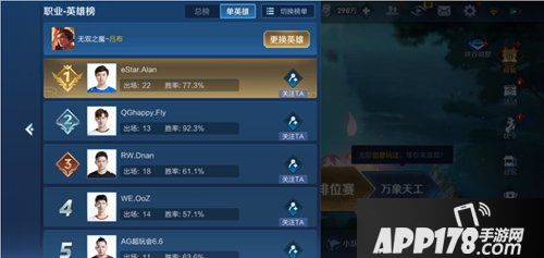 4. 新增2个赛事相关排行榜:职业-英雄榜、职业-选手榜