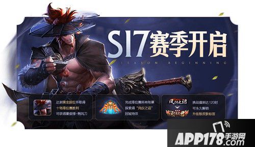 S17赛季达到黄金段位并取得10场排位赛胜利可领取S17赛季专属皮肤夏侯惇-朔风刀。