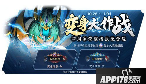 10月26日起,参与变身大作战,收集四周岁扭蛋,累计开启可获得四周年专属荣耀播报:变身逆袭