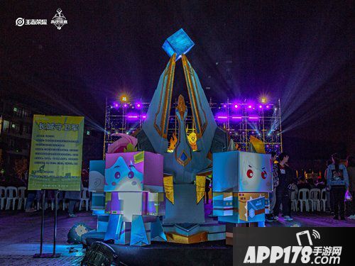 以防御塔、大龙、小龙、抢红爸爸的李白、被人追逐的鲁班七号等玩家熟悉的场景作为主体用纸雕及灯光。