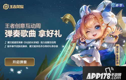 关注万千想法,期待创意表达,王者创意互动周开启;在创意互动营,召唤师们的创意将有可能在游戏中“圆梦”, 峡谷共建,创意无限,每个来自召唤师的表达都有价值!为了助力王者创意互动周,蔡文姬邀请各位召唤师们来参与【演奏赢好礼活动】,了解分享创意互动周的各个内容,就可以参与演奏永远的长安城,赢取好礼哦~