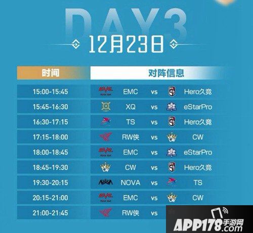 2019年王者荣耀冬季冠军杯选拔赛参赛战队为:KPL赛区eStarPro、TS、RW侠、Hero久竞、XQ;KRKPL赛区EMC、Nova、CW,共计8支战队进行循环BO1,决出最后两个2019年王者荣耀冬季冠军杯淘汰赛资格。选拔赛具体赛程如下: