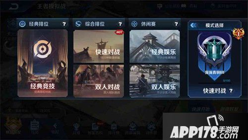 王者模拟战正式赛季开始,将会有三种类型的模式,分别为:经典排位(原单人排位),综合排位(包含快速对战和双人对战),休闲赛(包含经典娱乐和双人娱乐)