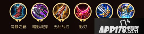 冷静之靴、暗影战斧、无尽战刃、影刃、破军、贤者的庇护