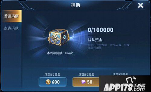 捐赠:队员可将个人货币(战队币等)捐赠给战队,为战队提供战队资金。