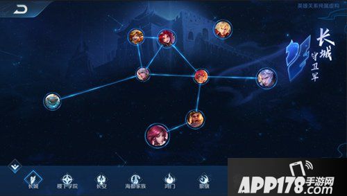 阵营系统首页中,可以看到目前已上线的所有英雄所属的势力,和英雄之间的关系。