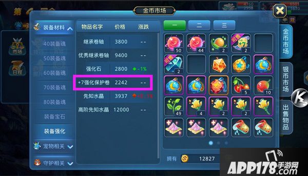 为了保证愉快地+7,喵子建议大家都去买一个+7强化保护符,其实还蛮便宜的,可以保证就算失败了,也不会掉级。同时还要上几个幸运石,最好上优秀幸运石,有几个上几个!一般来说,应该可以顺利打上去了。+8+9同理!强化保护符在活动中有机会得到,+7的保护符可以直接在市场中买到。而幸运石,可以在商城中获得!