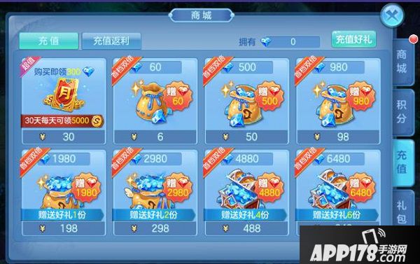 1、每次充值都有额外钻石赠送,充值额度越大,赠送越多