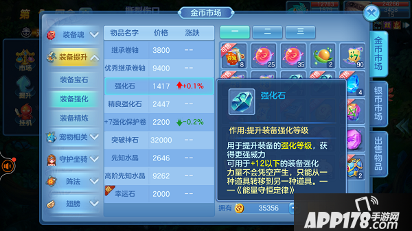 第一点,强化石备足!对于我们平民玩家来说,强化石获取的渠道也有很多,每周的人品值可以换,日常刷各种任务也能得到。有条件的可以在商城优惠中购买3折的强化石礼包,也是非常划算的!另外+7强化保护券也可以攒一些,后期会有奇效哦!