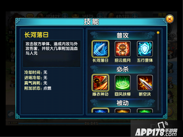 人物技能分为:普通技能、必杀技能、被动技能3大类。