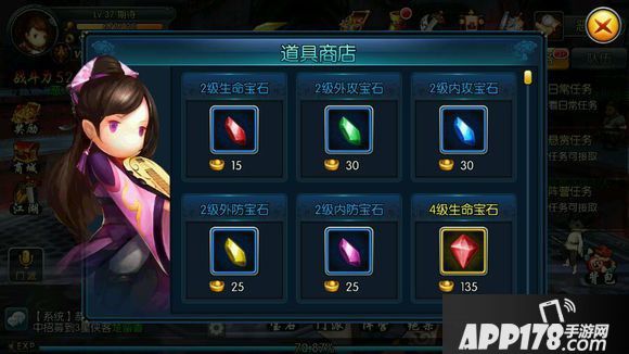 游戏副本有两种,一种是江湖游历,另一种是侠客奇遇。江湖游历=普通副本,侠客奇遇=精英副本,通关精英副本并且全3星,则有精英宝箱奖励。一般精英副本都有两波怪,在进行侠客对战时候,尽量自己手动选取技能,这样子才能保证己方的侠客不会死亡。每个副本消耗的体力都是10点,体力也可以用元宝进行购买,50个元宝可以购买120体力,封测期间,系统会送大量的元宝,所以买体力就必不可少了,体力对于装备升阶非常有帮助。