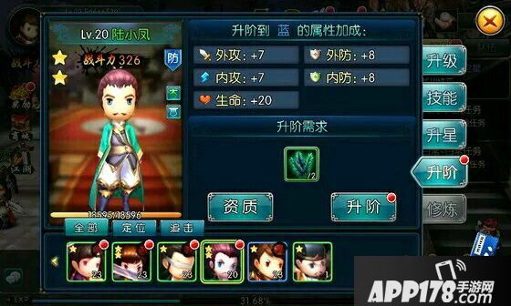 可以提高侠客的属性,要消耗一定的材料和指定等级才可进阶,获得材料须通过十连抽、副本、签到等方法。