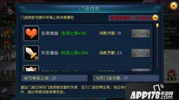 为什么说门派技能很重要,上述玩法当中,如果是测试阶段,元宝都差不多的情况下,拼的就是这个门派技能了,当然,你得找一个好的门派,人多的门派(包括以后公测,这个是必然的)想要成为高站,每天300元宝+30W铜钱+每天组队押镖一定要满。看好技能冷却时间点技能。优先制也是攻击>防御>其他,值得提醒的是攻击一定要点满了才去点其他的,应该门派攻击xing价比是最高的。大概是8/5/2、所以需要小伙伴自己去关注。(重要提醒:不要用贡献去转转盘,很亏)