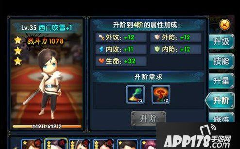 侠客升阶可通过消耗一定资源提升侠客的品质。