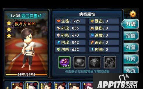 侠客升级可通过完成副本或者消耗经验道具增加经验。
