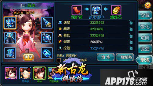 《新古龙群侠传》手游中装备分为基础属性和二级属性。每类装备有特定的基础属性,装备强化和升阶可以提高装备基础属性。在开始装备锻造和装备熔炼后,可以提升装备的二级属性。