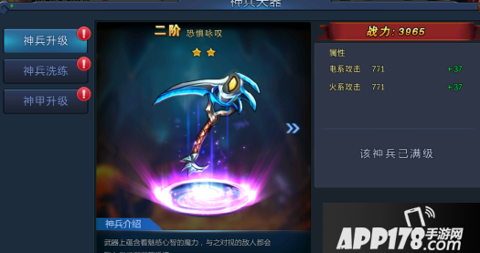 神兵一共有7把,每一把神兵升级都讲增加人物的属性攻击能力,神兵的属性可累加。