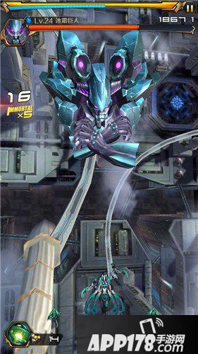 BOSS在形态二的输出比形态一强上太多倍!最需要注意的是,常见的弹幕之一红色炮弹,在到达屏幕四周后会反弹回来的,稍不注意就会连吃子弹。期间还会有射线的炮弹穿插,有些不好防御,如果副炮使用的是钢铁守卫,就会轻松不少。冰霜巨人的所有炮弹中,威力最大的还是激光射线,通常是夹杂在会反弹的红色炮弹期间发射,需要注意,很有可能就直接挂掉了。