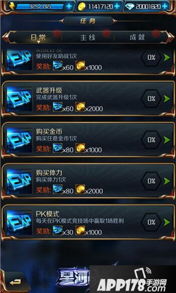 这些任务简直就是每日必得福利有木有?技能升级、武器升级、购买金币、购买和赠送体力、好友助战,这些任务对于大神们来说简直轻而易举。每天花三分钟,经验自然来!