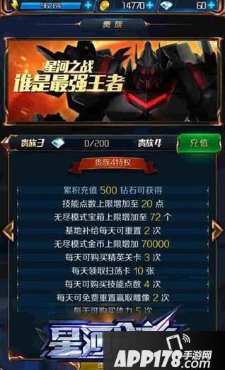 对于游戏星河战神的相关角色表现过程中,玩家在V特权的运用过程中,这些RMB玩家其最让玩家感到羡慕的除了在对应的特权开启上有着完全的独立机制,更为主要的则是在对应的所谓无尽模式中表现出的宝箱上限的增加,这些宝箱的奖励更是为玩家有机会邂逅更多的机甲和装备的碎片,以及升阶材料,并且其中额外的属性程度还是格外让玩家受用其中。