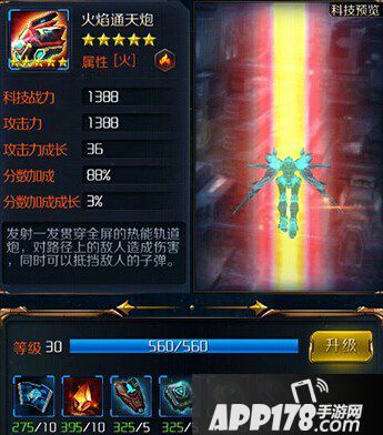 以上就是小编带来的星河战神火焰通天炮进阶攻略,希望对大家有所帮助!了解更多精彩内容,请关注APP178手游《星河战神》游戏专区!