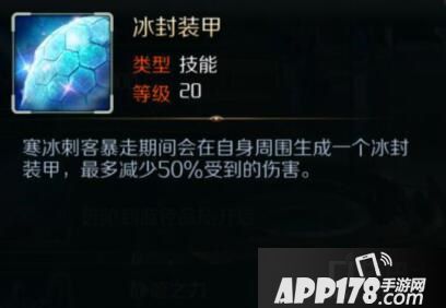 【冰封装甲】寒冰刺客暴走期间会在自身周围生成一个冰封装甲,最多减少50%受到的伤害