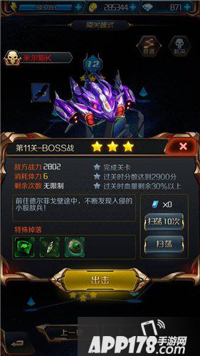 以上就是小编带来的星河战神闯关模式普通第十一关通关攻略,希望对大家有所帮助!了解更多精彩内容,请关注APP178手游《星河战神》游戏专区!