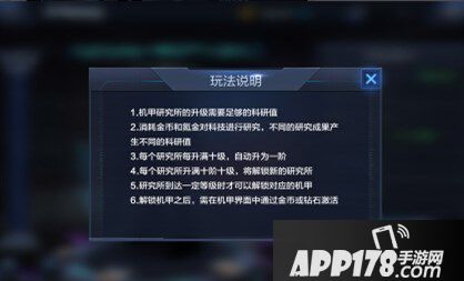 以上就是对机甲研究所的介绍哦!以上信息可做参考,更多精彩可进入APP178手游星际火线专区查看哦!大家也可以在百度搜索“APP178手游星际火线”,即可查看到游戏专区,里面为你展示最新攻略、资讯哦!