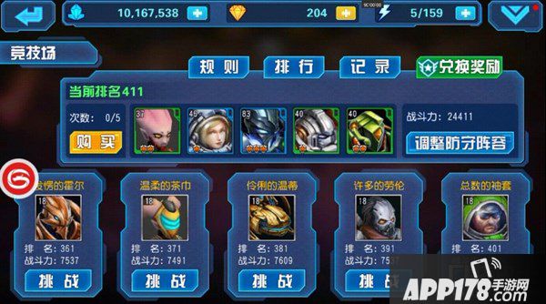 当玩家感觉自己的资源不够用时,可以在更多玩法中进行获取,竞技场中玩家排名上升就会立刻获得丰厚的钻石奖励,而竞技获得的竞技点,也可以兑换奖励。