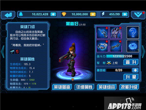 黑寡妇是《星际传奇》中天使的姐姐,也是人类五小强中的神枪手,弹无虚发,击击掉血。在游戏中,黑寡妇有着超强的物理单点能力,大招还兼具打断的效果,二技能还可以大范围沉默,可谓是无论是前期BOSS还是绝对领域的挑战副本,黑寡妇都是绝对的强力的英雄,也属于一直可以用到后期的类型。下边就由小编来为大家详细的介绍一下游戏中的黑寡妇吧!