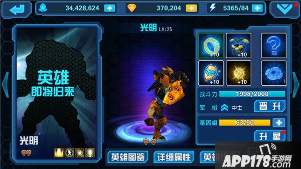 光明是近战防御型英雄,尤其擅长能量防御。光明一方面能够使用双拳双腿直接攻击敌人;一方面还能汇聚光能引发光爆,将周围大范围内的敌人致盲,使其无法命中目标。光明和怒熊、罪念黑球或者猎鹰一起上阵都可以获得防御属性的加成,让自己变得更肉。