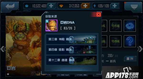 2、数个精英关卡都有巨岩的DNA产出,玩家可以通过精英关卡慢慢的积攒巨岩的DNA用来合成和后续培养英雄。