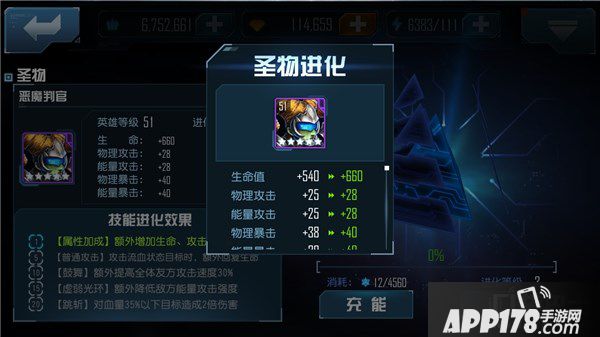 恶魔判官的获取难度并不高,不管是“传送站”的十连还是“战斗”中精英关卡都可以获得,这也就代表着恶魔判官是一个有培养潜力的英雄,有固定的DNA获取途径,就有升到满星的可能。
