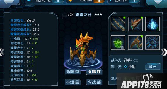 如图所示,新英雄剧毒之牙有着极高的物理输出成长,这确保了作为一个DPS的火力。血量成长在输出英雄中属于中高水平,这使剧毒之牙有着一定的生存能力,能够确保在战斗中进行持续的输出。