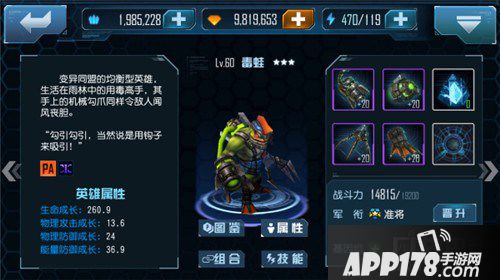 毒蛙有着260的生命值成长,对于一个输出来说,260的生命成长可谓是相当的高。甚至超过了光明和烈火等前排T的成长。13.6的物理攻击成长中规中矩,配合技能也有着不容小觑的输出能力。而24的物理防御成长和36.9的能量防御成长,更是让毒蛙更加皮糙肉厚,尤其在对抗能量队时,高能量防御让毒蛙能够成为一名非常出色的“菜刀队”队员。