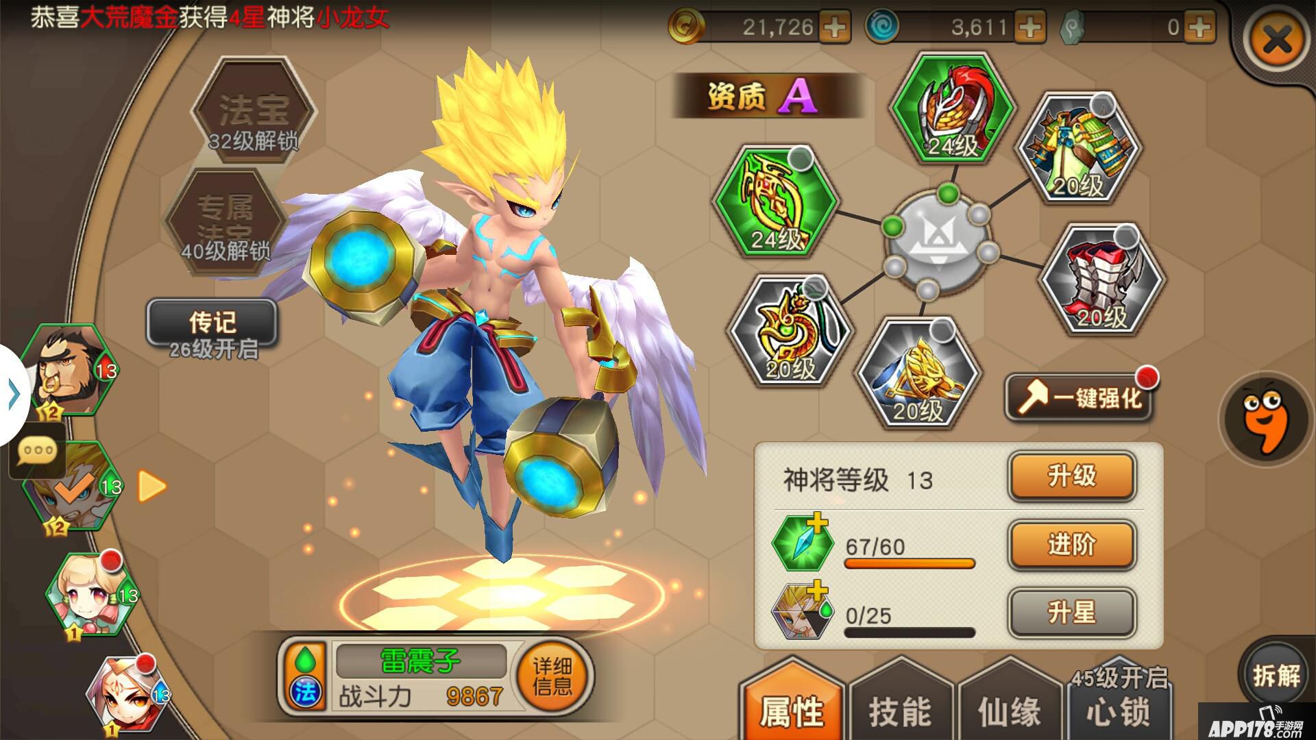 神将的属性培养主要靠升级、进阶、升星和强化等几个方面展开,需要有方向地塑造和发展每个神将。另有技能、仙缘、心锁三个方面来提升神将的技能。