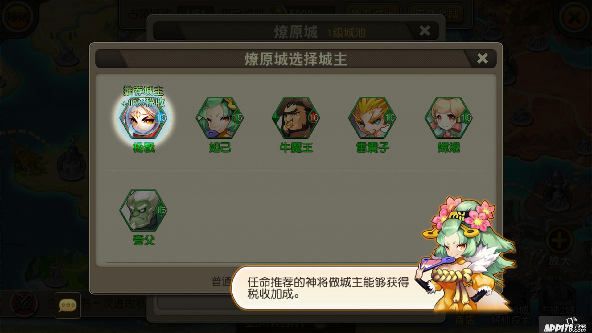 “逐鹿九州”中可以进行城池建设,选择一个神将作为城主,攻城后可进行征税,增加金币收入。