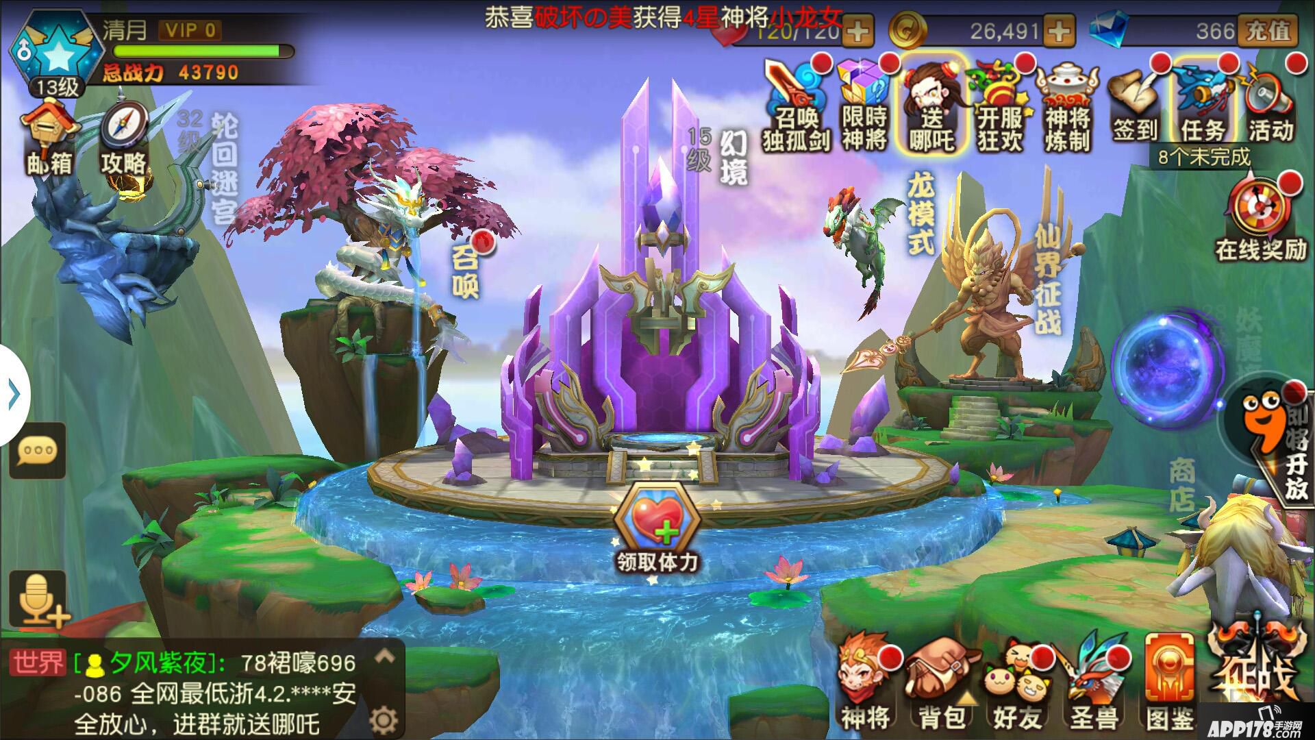 另外也有PVP玩法,在仙界征战中,可选择随机匹配玩家进行对决,可根据对方阵容来调整自己的神将阵容,而在PVP玩法中没有圣兽。