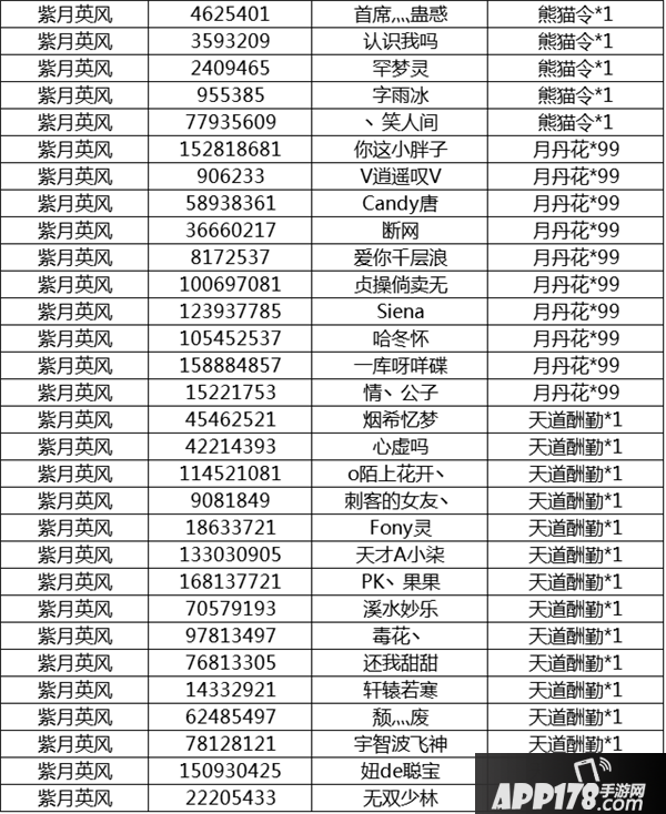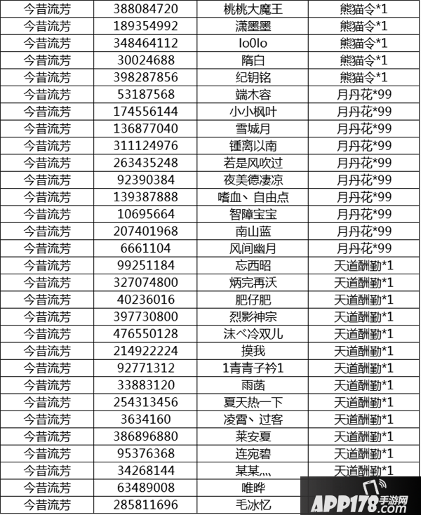 中秋当晚9-10点在线的玩家中,每个服务器随机抽取30名获奖,奖励内容如下:
