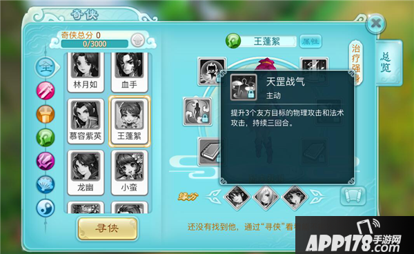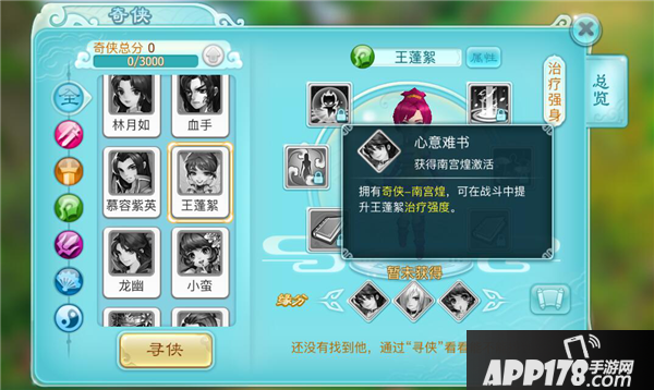 心意难书:拥有奇侠-南宫煌,可在战斗中提升王蓬絮治疗强度。