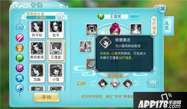 我要暴走:与奇侠-小蛮共同参战,可在战斗中提升王蓬絮治疗强度。