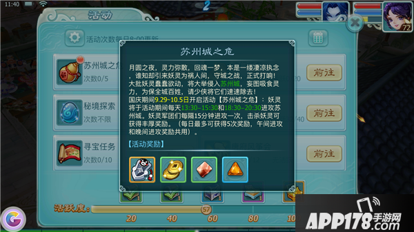 国庆即将到来,《仙剑奇侠传3D回合》推出了新的活动“苏州城之危”,大批妖灵即将涌入苏州城,相信小伙伴们早已经迫不及待了,那么苏州城之危的具体玩法是什么呢?下面让小编来为大家细细道来。