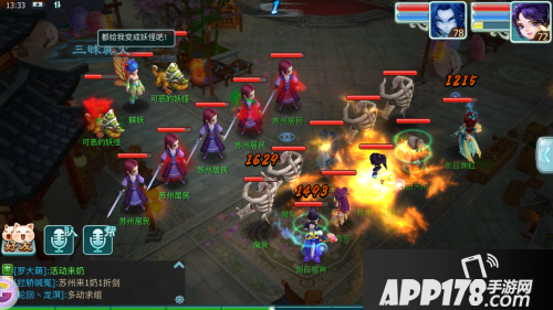 第一回合,boss会给小弟上双攻buff。注意不要打苏州居民,可以封印苏州居民(蝶妖血量较多,建议最后击杀)。