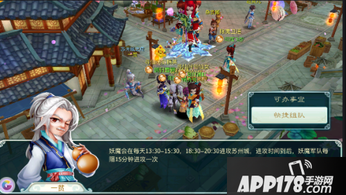 活动开始前我们需要先组一个队伍,毕竟孤掌难鸣,没有队伍的小伙伴们可以来到苏州城,找到一贫进行快捷组队。